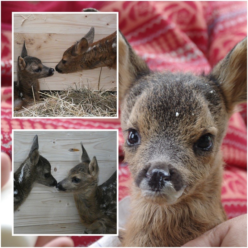 Und dann fand auch die erste Annäherung statt zwischen den beiden. Kleine Rehkitze kuscheln zusammen, putzen sich gegenseitig und entdecken zusammen die Welt.